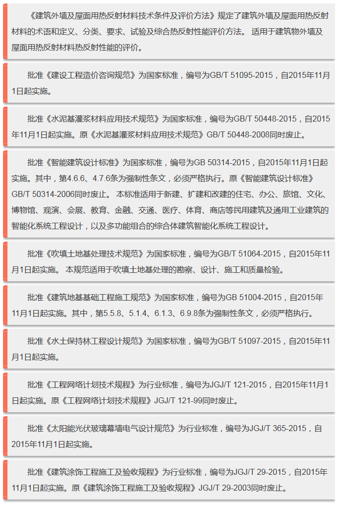 2015年11月實施的工程建設(shè)標準匯總