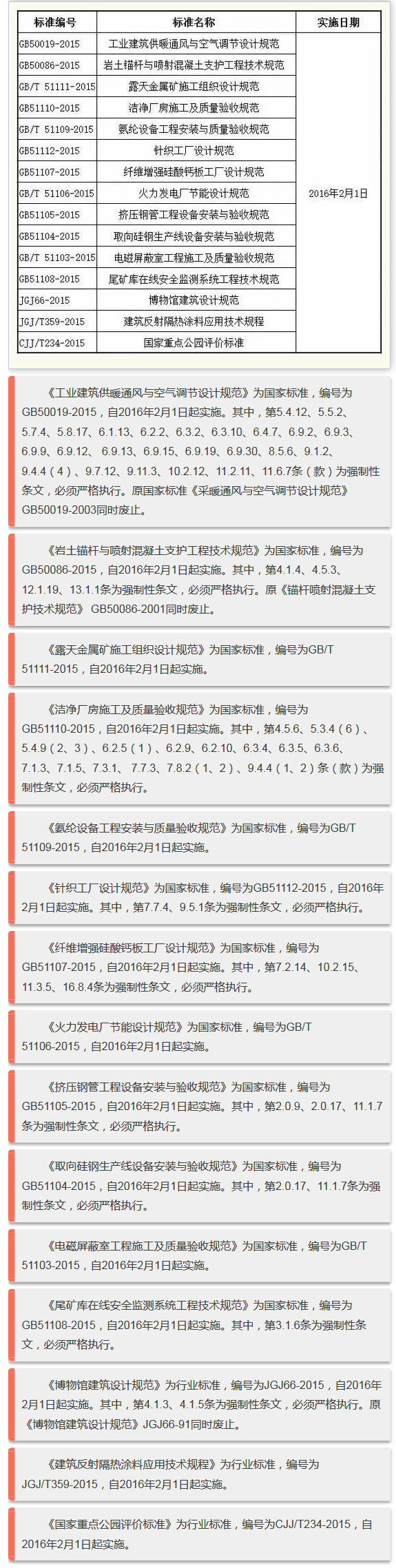 2016年2月實施的工程建設(shè)標(biāo)準(zhǔn)匯總