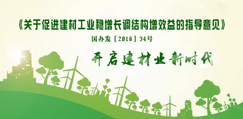 近日,國務(wù)院辦公廳以“國辦發(fā)〔2016〕 34號”,下發(fā)了《關(guān)于促進建材工業(yè)穩(wěn)增長調(diào)結(jié)構(gòu)增效益的指導(dǎo)意見》(以下簡稱34號文)。據(jù)記者了解,34號文的指導(dǎo)思想,就是要在供給側(cè)截長補短,壓 減過剩產(chǎn)能,有序推進聯(lián)合重組,改善企業(yè)發(fā)展環(huán)境,增強企業(yè)創(chuàng)新能力,擴大新型、綠色建材生產(chǎn)和應(yīng)用,優(yōu)化產(chǎn)業(yè)布局和組織結(jié)構(gòu),推動我國建材業(yè)進入新的發(fā) 展階段。