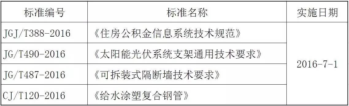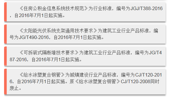 2016年7月實施的工程建設標準匯總