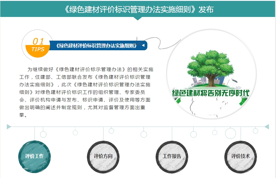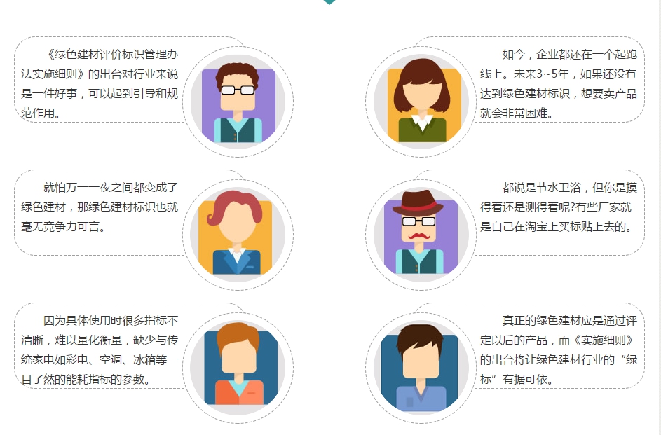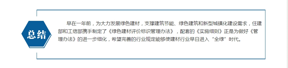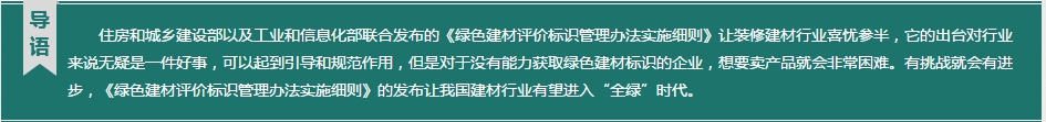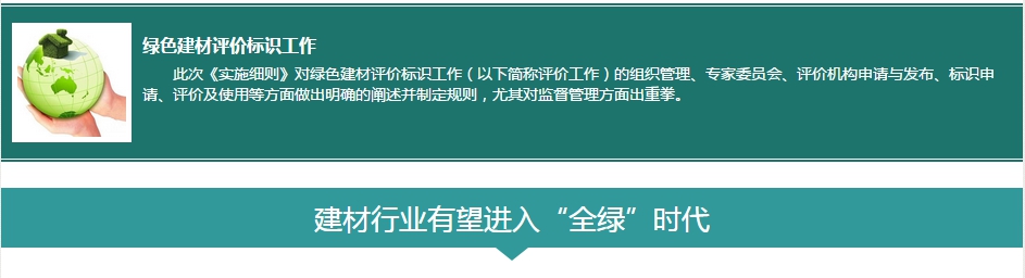 2015年4月,住房和城鄉(xiāng)建設(shè)部以及工業(yè)和信息化部聯(lián)合發(fā)文,征求對《綠色建材評價(jià)標(biāo)識管理辦法實(shí)施細(xì)則》(征求意見稿)的意見。它的出臺對行業(yè)來說無疑是一件好事,可以起到引導(dǎo)和規(guī)范作用,但是對于沒有能力獲取綠色建材標(biāo)識的企業(yè),想要賣產(chǎn)品就會非常困難。有挑戰(zhàn)就會有進(jìn)步,《綠色建材評價(jià)標(biāo)識管理辦法實(shí)施細(xì)則》的發(fā)布讓我國建材行業(yè)有望進(jìn)入“全綠”時(shí)代。