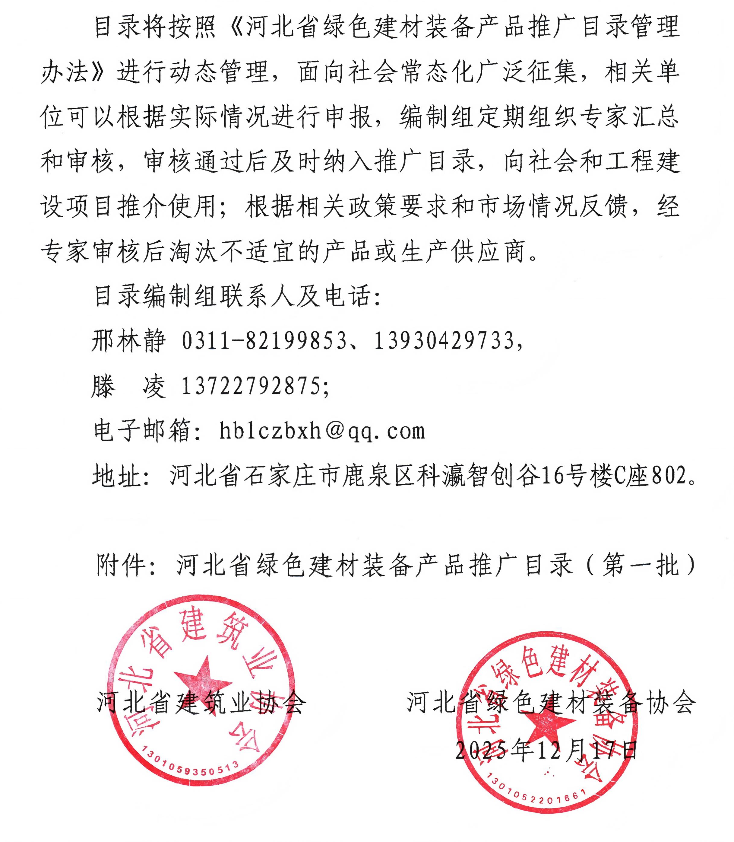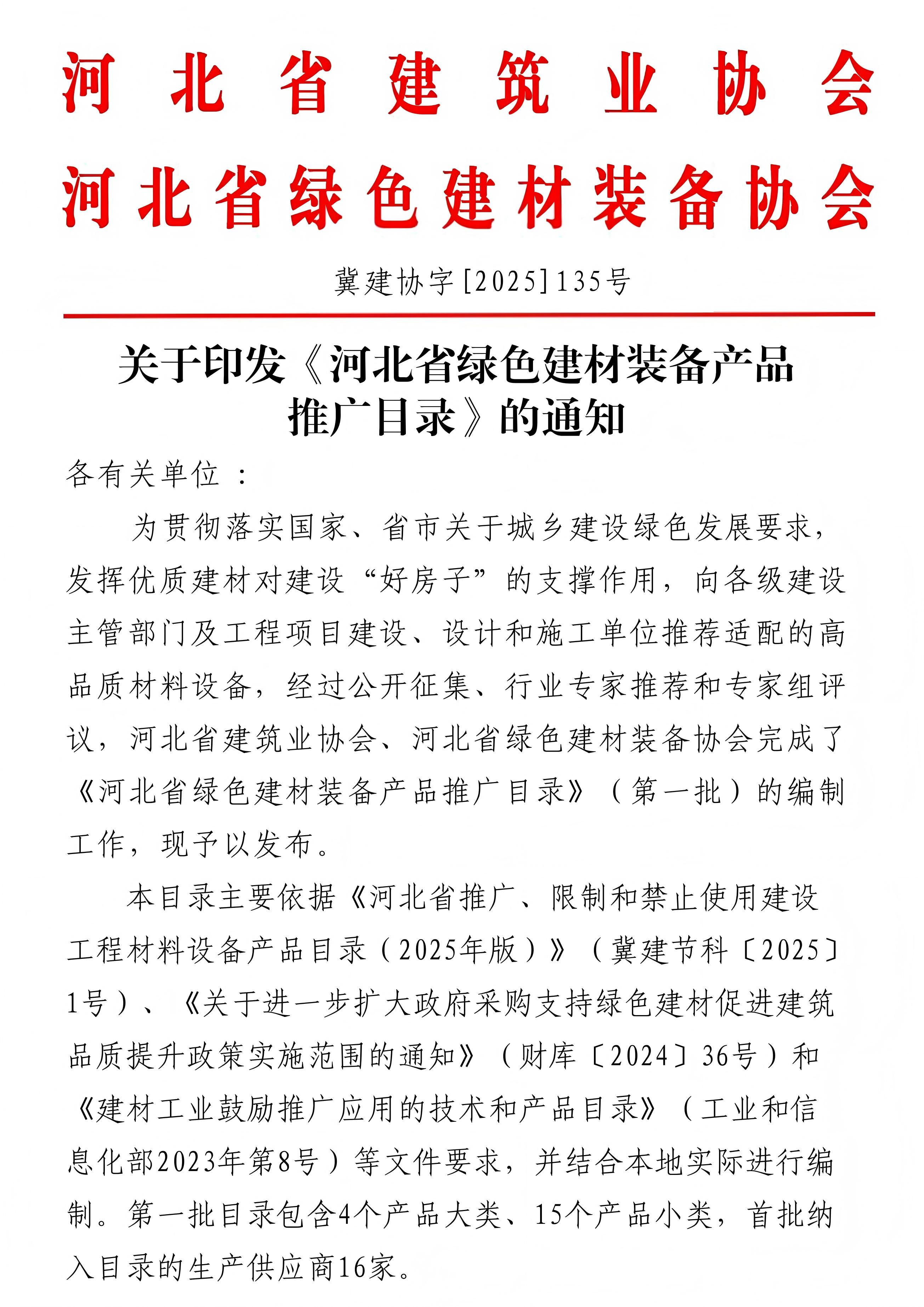 關(guān)于印發(fā)《河北省綠色建材裝備產(chǎn)品 推廣目錄》的通知